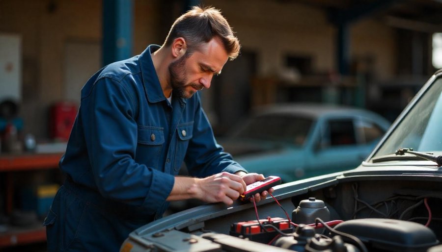 Next, test your battery’s health with a multimeter. Set the device to measure DC volts, then place the red probe on the positive terminal and the black probe on the negative. With the engine off, a fully charged battery should read around 12.6 volts. If your reading dips below 12.4 volts, it’s a sign that your battery is weakening and may need recharging or replacing soon. Regular voltage checks, especially before long trips or during extreme weather conditions, help you spot potential problems early—before they turn into roadside emergencies. Performing this check takes just a few minutes but can save you from unexpected breakdowns and costly repairs.